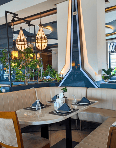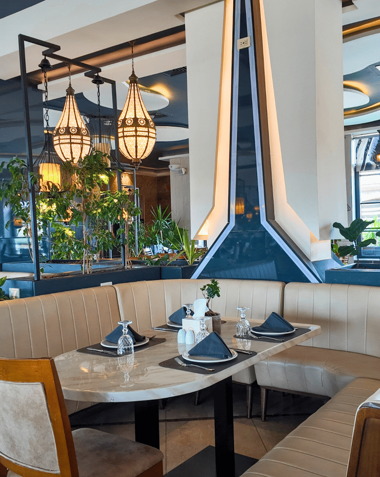 ادخل إلى مطعم بيت الكرم واستمتع بأجواء داخلية دافئة تجمع بين الأناقة العصرية والسحر اللبناني التقليدي. يتميّز ديكور المطعم بلمسات خشبية دافئة، وإضاءة ناعمة، وتفاصيل شرقية أنيقة تخلق جوًا مريحًا وراقياً، مثاليًا للعشاءات الحميمة أو التجمعات العائلية والأصدقاء.