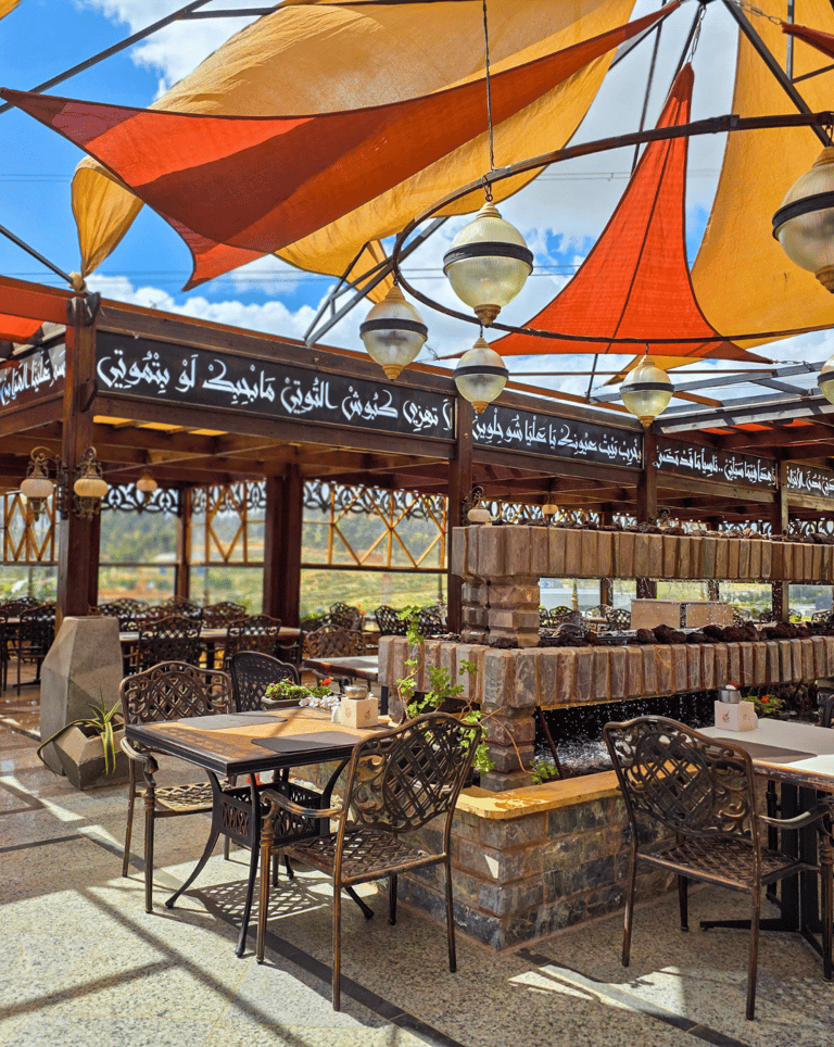 اخرج إلى الهواء الطلق واكتشف سحر الجلسات الخارجية في مطعم بيت الكرم، حيث يلتقي جمال تناول الطعام في الهواء الطلق بروح الضيافة اللبنانية الأصيلة. تحيط بالمكان مساحات خضراء أنيقة وإضاءة ناعمة تبعث الدفء والهدوء، ليقدّم التراس ملاذًا مريحًا بعيدًا عن صخب المدينة — مثاليًا لغداءٍ منعش أو عشاءٍ دافئ تحت ضوء النجوم.