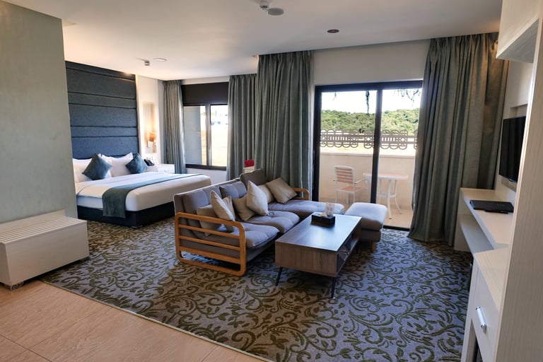 توفر الغرفة المكيّفة تلفزيونًا بشاشة مسطّحة، وميني بار، وصندوق أمانات، وغلاية كهربائية، إضافة إلى إطلالة على الحديقة.