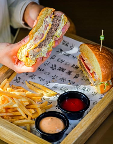 With rich aromas, warm ambiance, and a colorful variety of dishes, our café is the perfect place to indulge any craving. Savor our signature burgers stacked high with premium toppings, creamy pastas made to perfection, or our freshly baked pastries that pair perfectly with our artisan coffee. Whether you’re looking for a quick bite, a casual lunch, or a cozy evening meal, our menu caters to every taste.